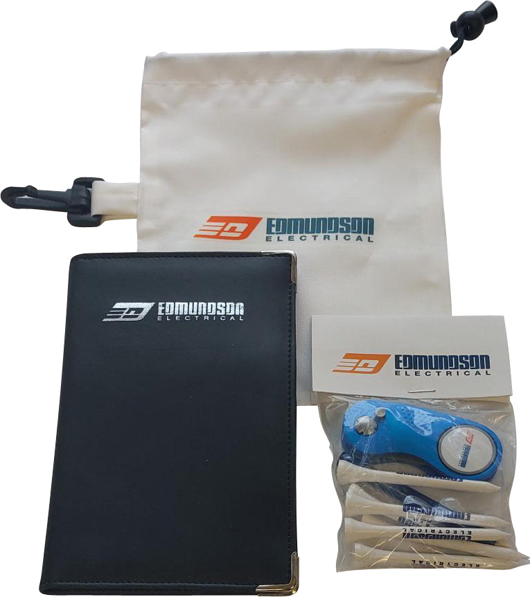 170 mm x 200 mm locking drawstring goody bag with a clip to attach to a golf bag with a full colour print on one side.