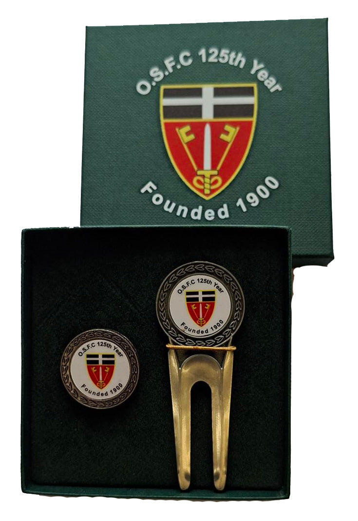 Our Classic pitch repairer comes in a brushed antique stainless finish with an 18.75 mm full colour decal bearing your crest, logo or even a photo.